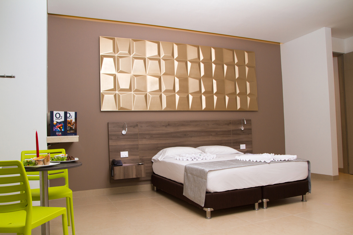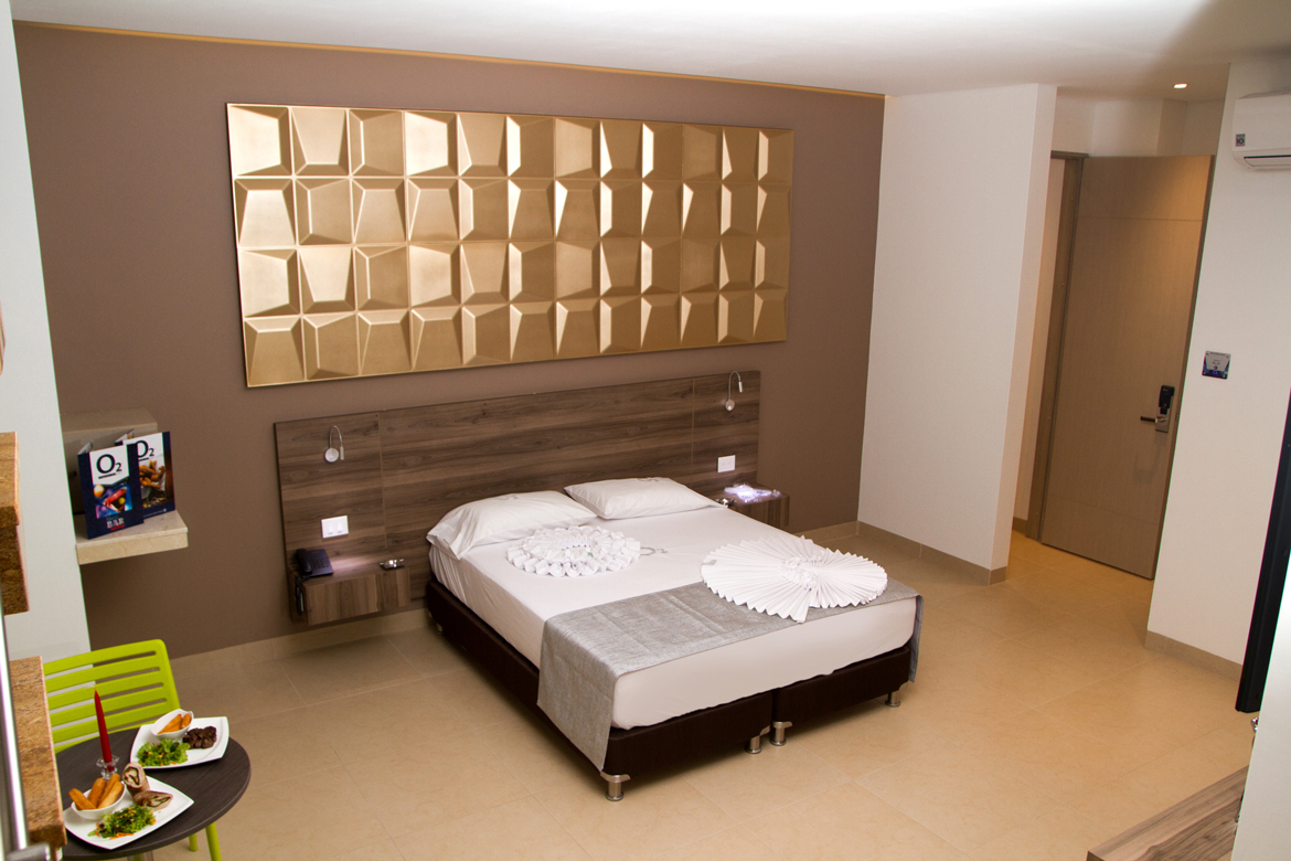 Un ambiente digno de admiración pues te brinda innovación y tecnología, sistema de sonido envolvente y servicio de Wifi, secador para el cabello, mini bar, cargadores para dispositivos USB, servicio de despertador virtual, sonido por Bluetooth, disfruta de acceso web y a Youtube mediante nuestro Smart Tv de 49”, juego de luces laser y una amplia mesa de cenas donde podrás disfrutar de las comidas de nuestra exclusiva carta O2.